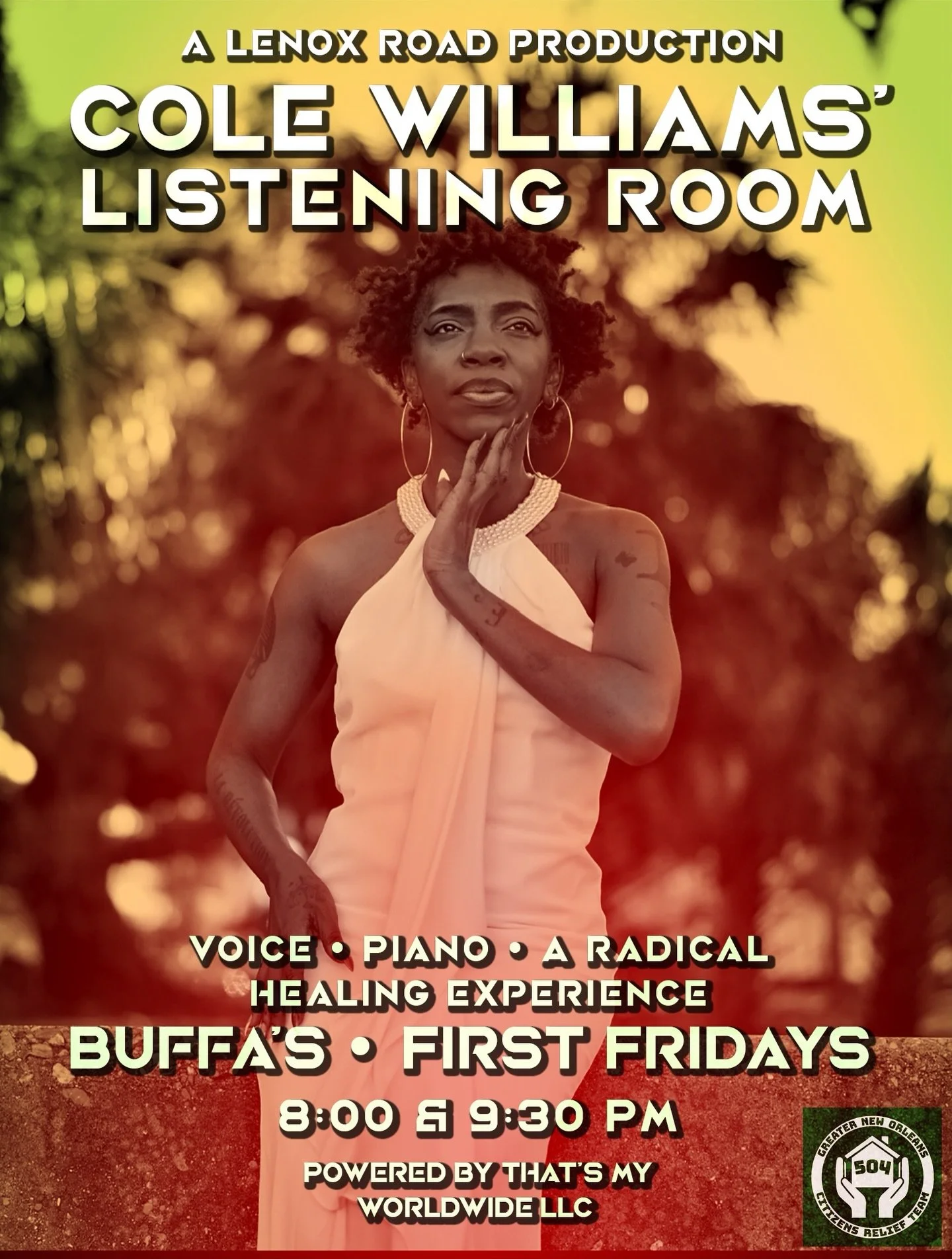 Cole Williams is a Jamaican-American entertainer, singer-songwriter, producer, recording artist, and founder of the Greater New Orleans Citizens Relief Team, whose musical work bends soul, gospel, and R&B with her community organizing work with the houseless.
